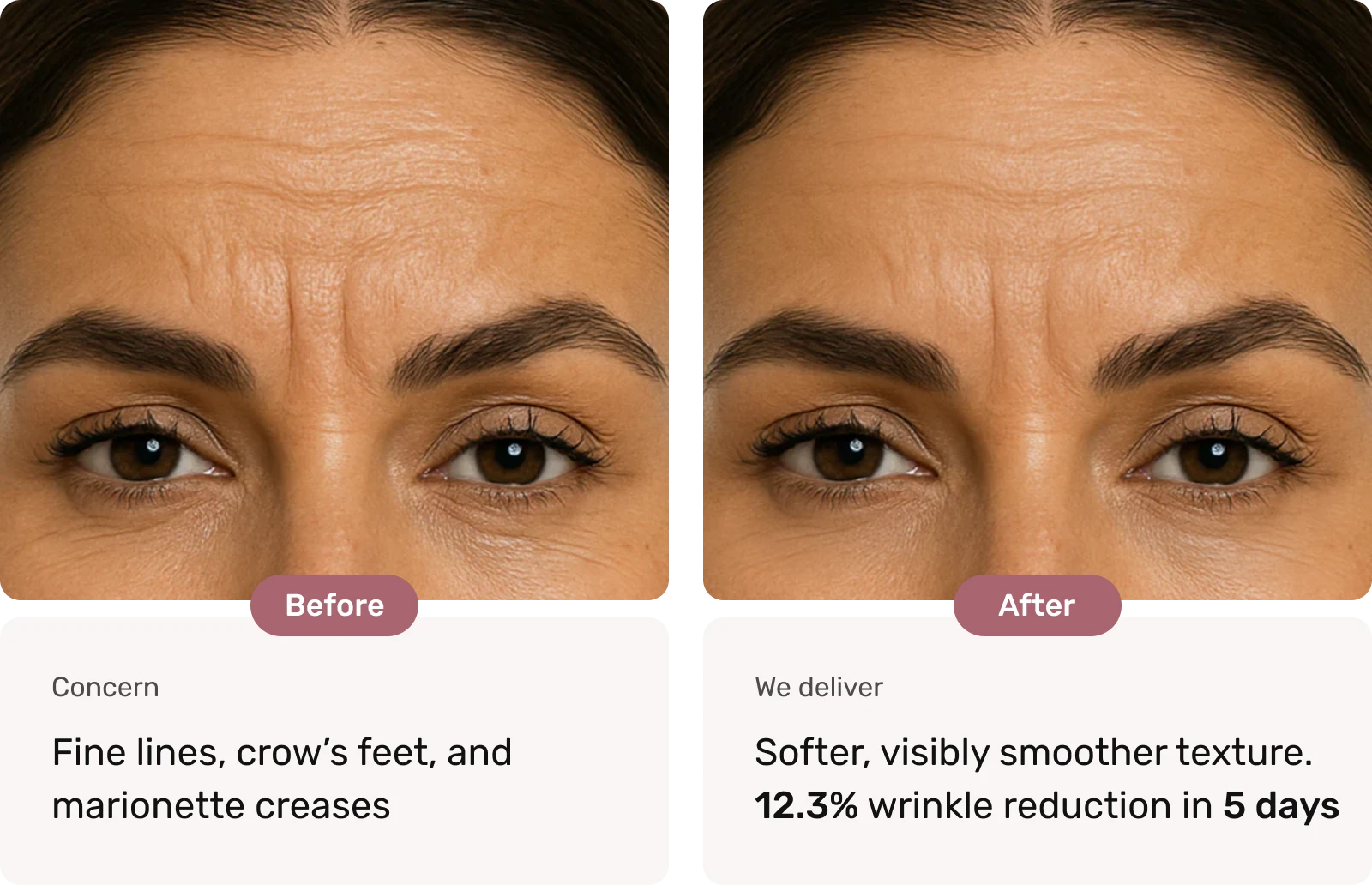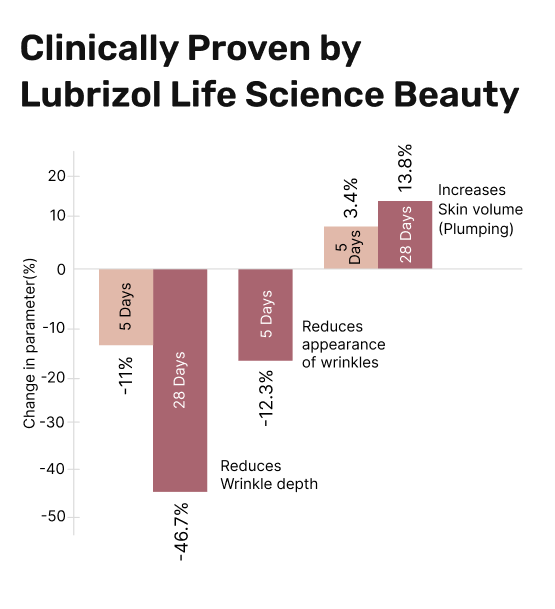 In clinical studies on 40 women (ages 32–60), Lubrizol’s Argireline® Amplified Peptide reduced wrinkle appearance up to 46.7%, measured using advanced skin analysis tools like PRIMOS 3D, Cutometry & Myotonometry.